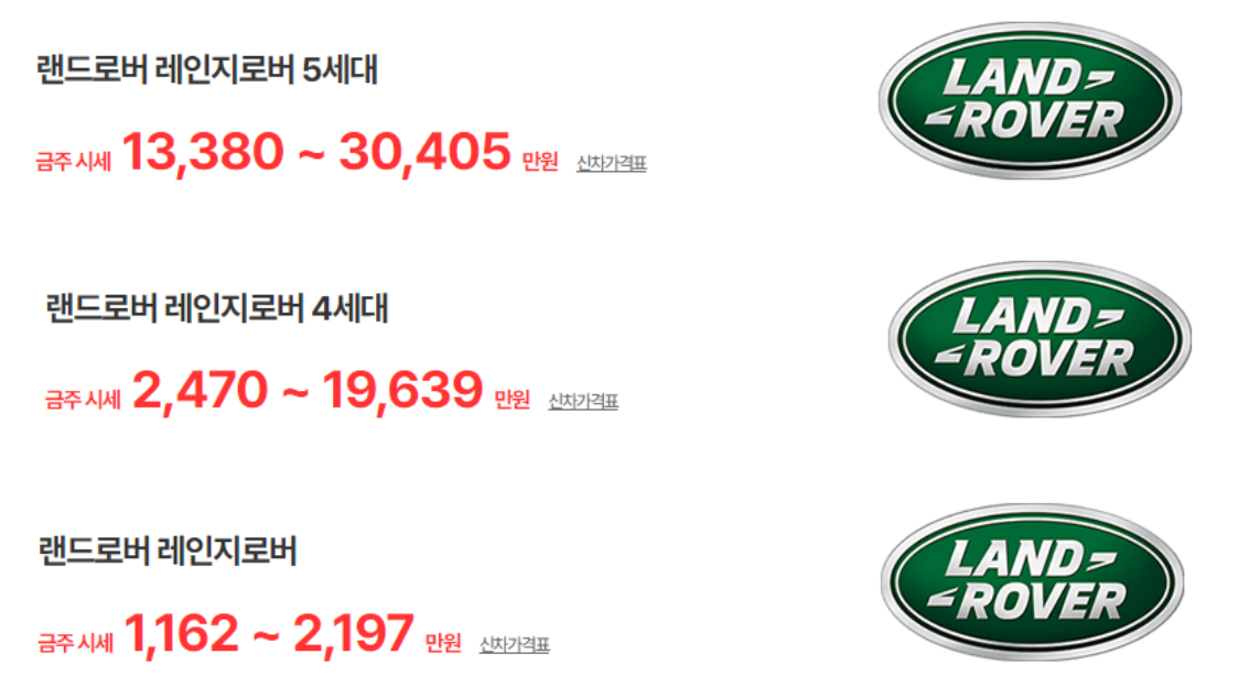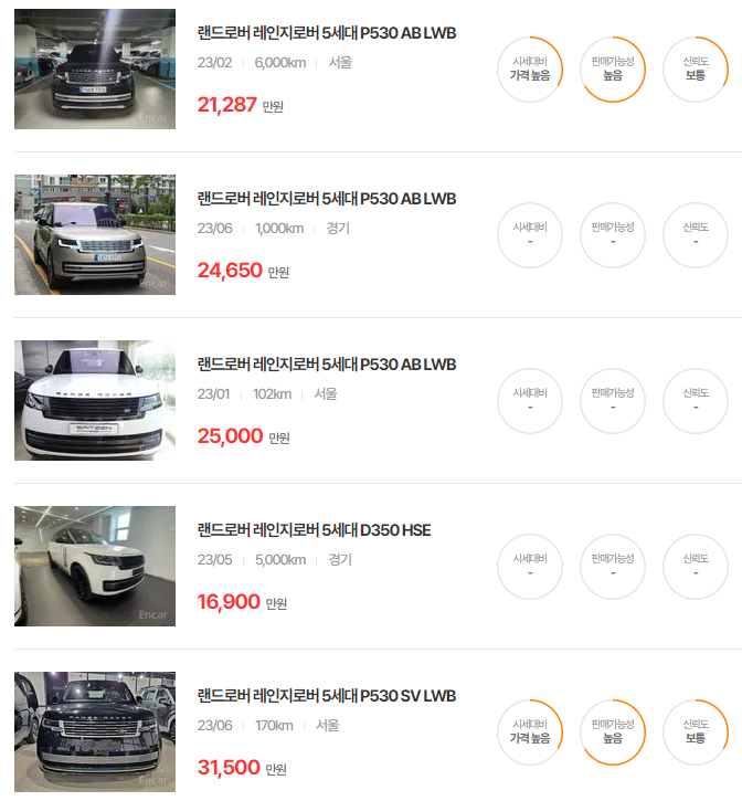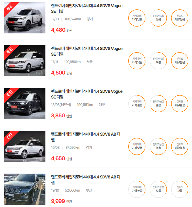 중고차의 시세는 여러 요소에 의해 결정됩니다. 랜지 로버 4세대(13~22년)의 경우, 매력적인 연식과 트림에 따라 가격이 다르게 나타날 수 있습니다.