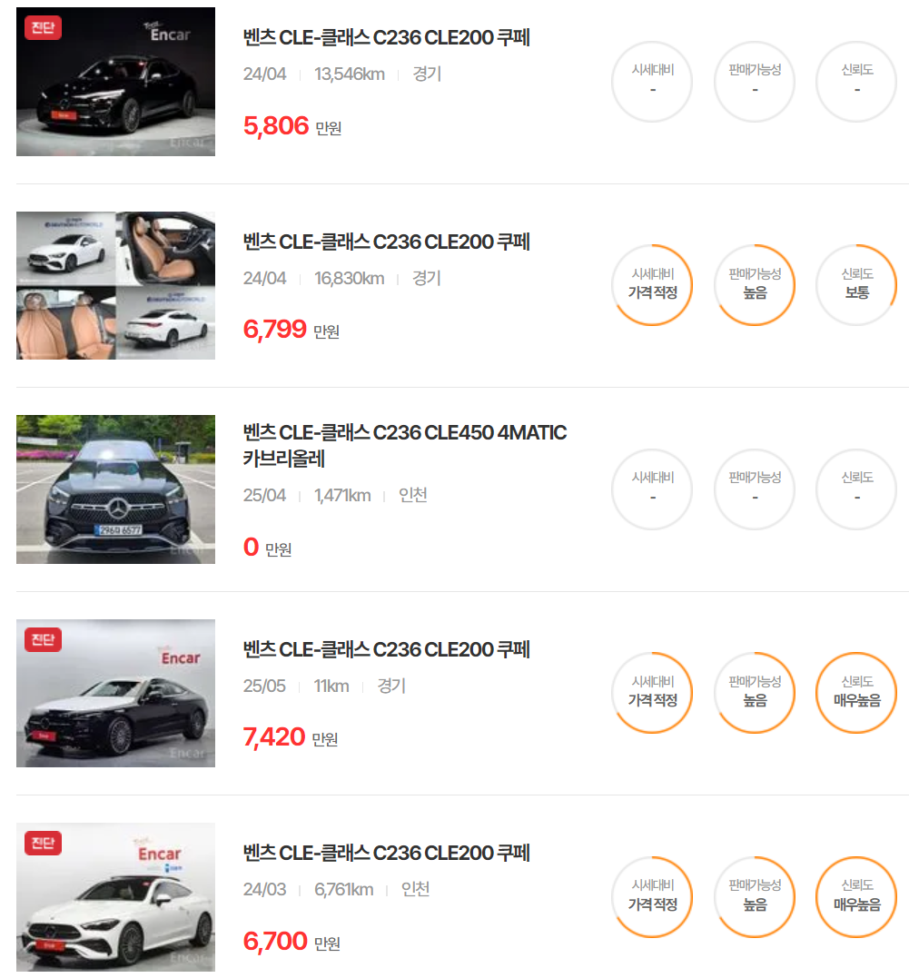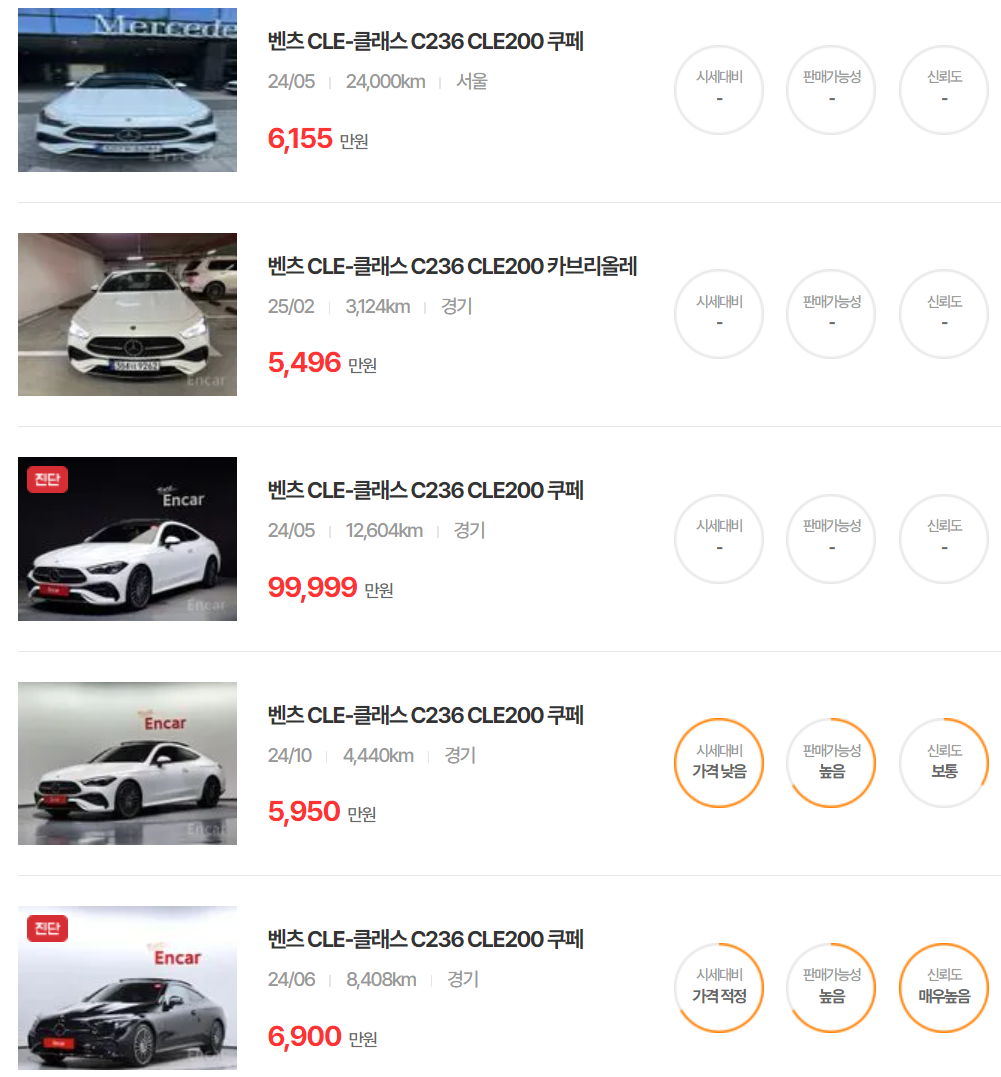 벤츠 CLE는 다양한 연식과 사양에 따라 중고차 가격과 연식별 시세뿐만 아니라 차량 유지비 또한 다르게 적용됩니다. 이 글이 벤츠 CLE 중고차를 고려하시는 데 도움이 되었길 바랍니다.