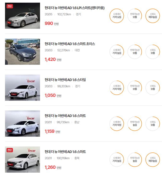 아반떼 AD 시리즈는 합리적인 가격에 만나볼 수 있는 경제적인 옵션입니다. 연식에 따라 유지비용 요소가 다르게 작용할 수 있으니 주의가 필요합니다.