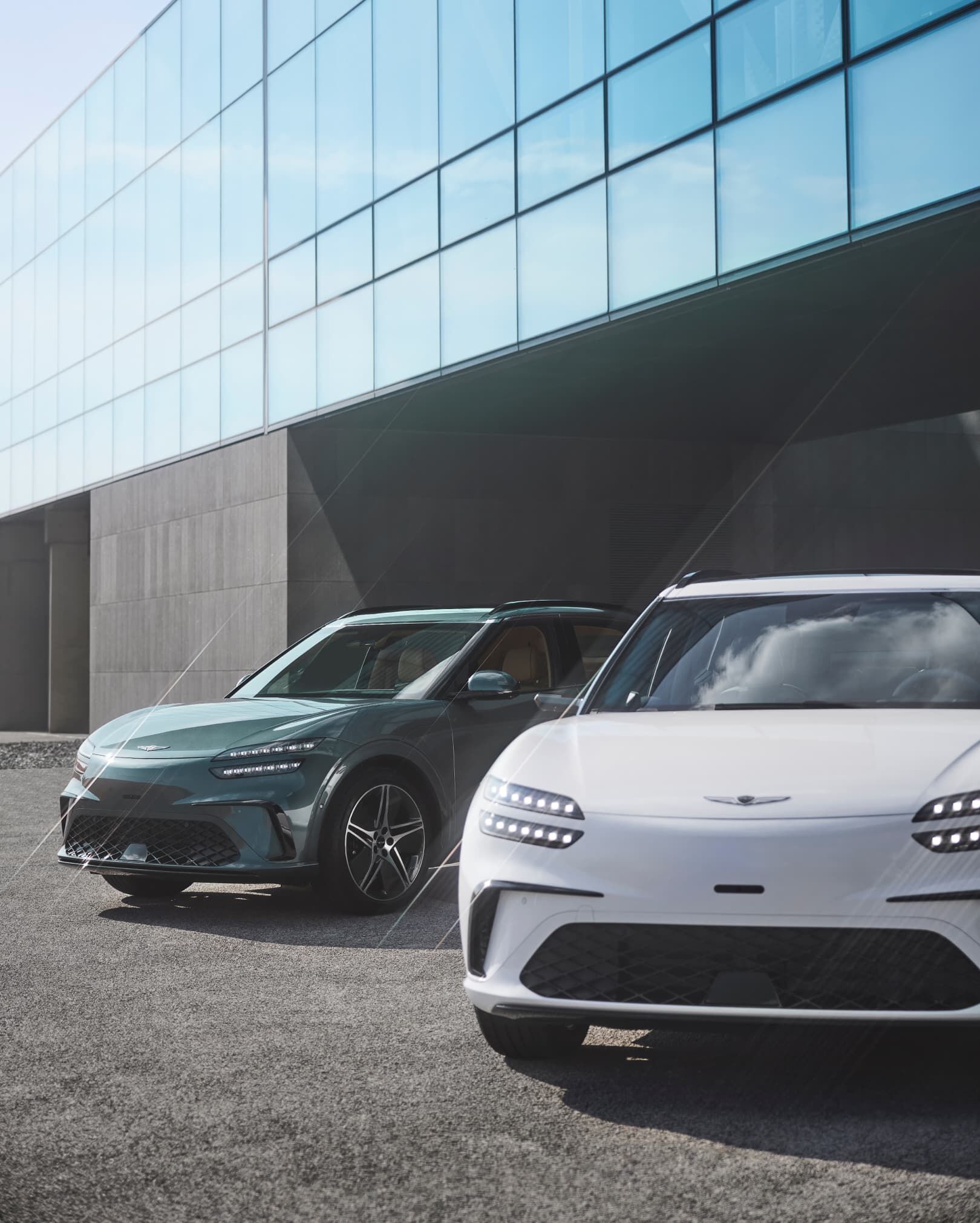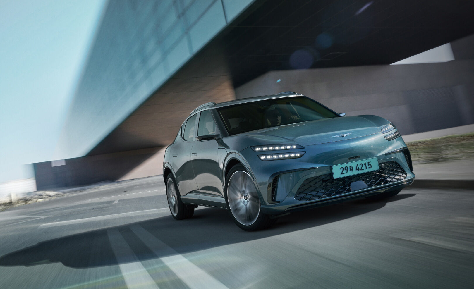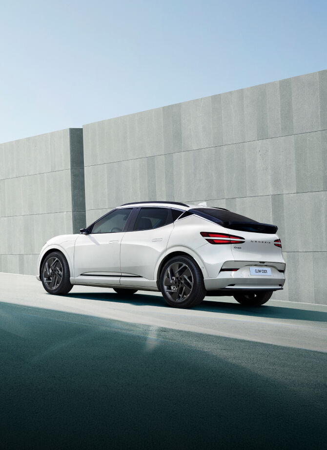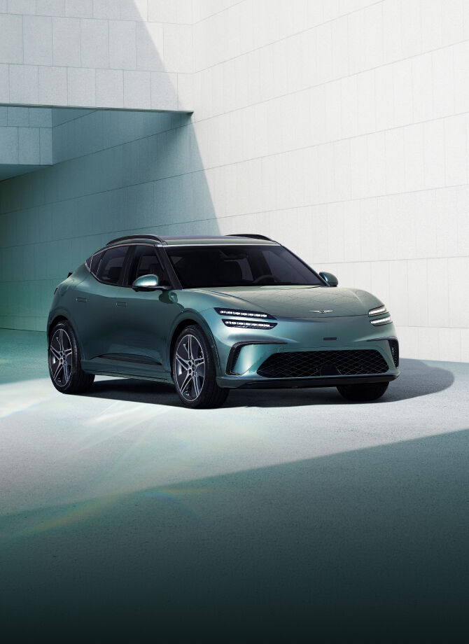 제네시스 GV60의 외관은 현대적이고 세련된 곡선미를 자랑합니다. 특히, 고유한 그릴 디자인과 역동적인 라인은 스포츠카의 느낌을 강조합니다.