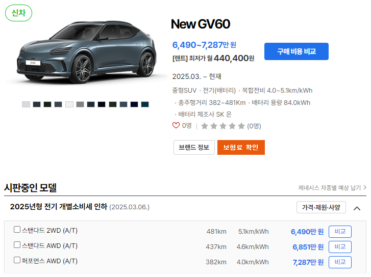 GV60는 그 자체로 인기 차종이며, 특히 퍼포먼스 AWD 모델이 많은 사랑을 받고 있습니다.