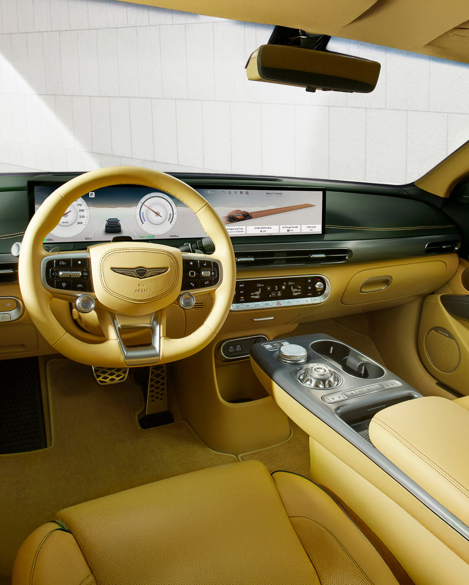 내부는 고급 소재와 현대적인 디자인 철학이 잘 조화되어 있습니다. 대형 디스플레이와 우아한 대시보드는 사용자 친화적이며, 여러 편의 기능들이 모여 있습니다.