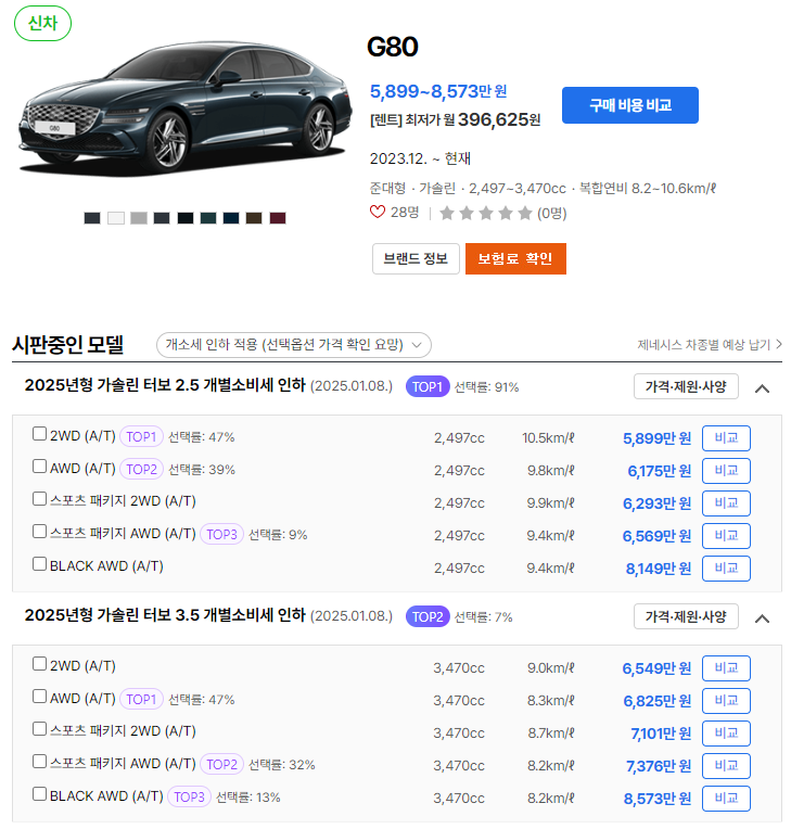2025 제네시스 G80은 고급스럽고 실용적인 선택으로, 가격, 연비, 제원, 유지비 등 전반적인 정보를 고려하여 구매를 결정할 수 있습니다. 해당 차량 구매에 고민 중이시라면 위 정보를 참고해보시길 바랍니다.