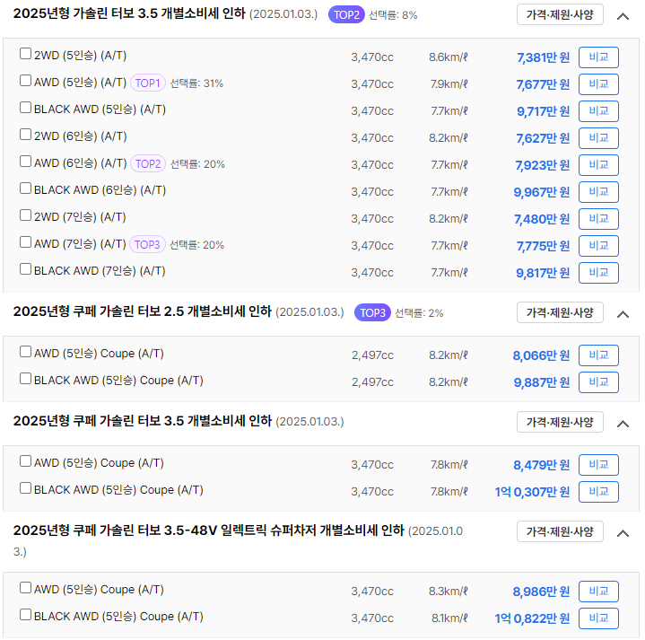이 외에도 세부 트림에 따라 추가 옵션 및 디자인 선택 시 가격이 달라질 수 있습니다.
