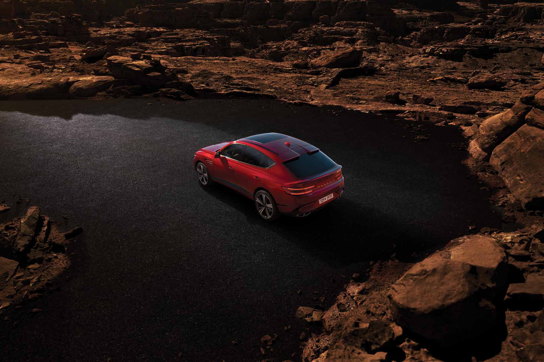 제네시스 GV80의 외관은 세련된 디자인과 강렬한 존재감을 자랑합니다. 매끄러운 라인이 돋보이며, 대형 그릴과 독창적인 헤드라이트 디자인이 인상적입니다.