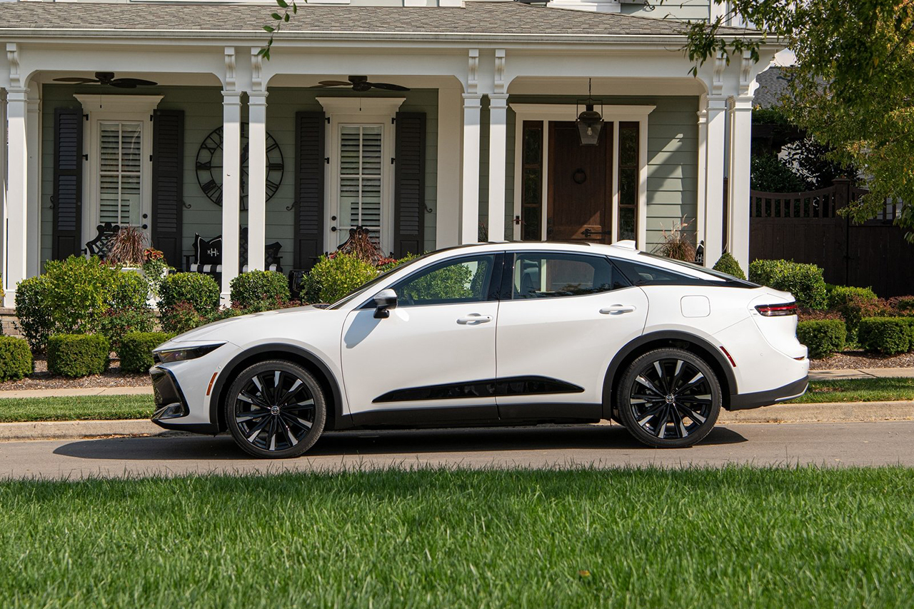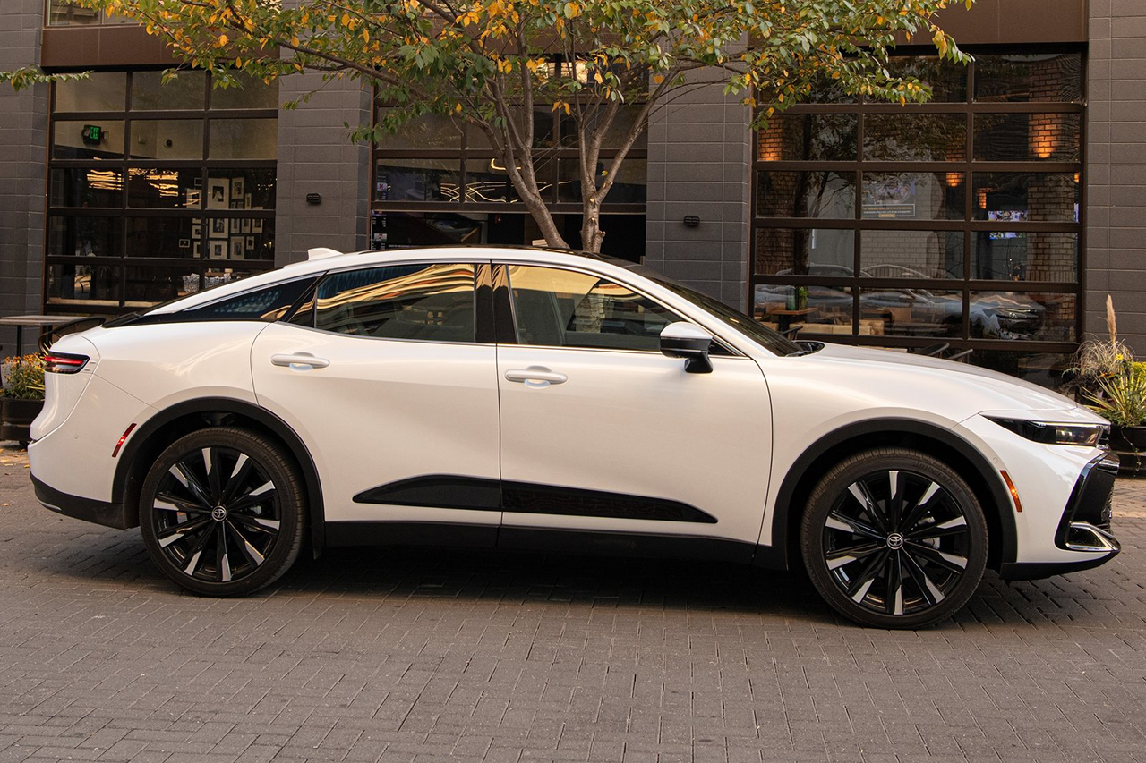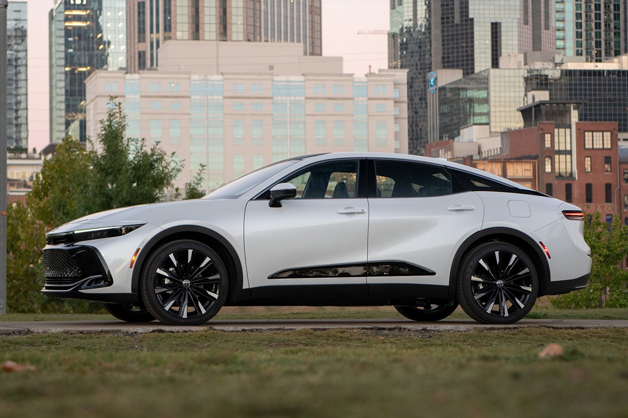토요타 크라운 크로스오버 하이브리드는 진취적인 SUV 스타일링에 세련된 크롬 장식이 인상적입니다. 날렵한 바디 라인이 전체적으로 스포티한 인상을 줍니다.
