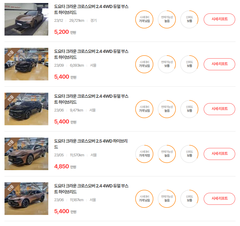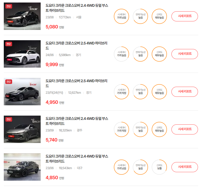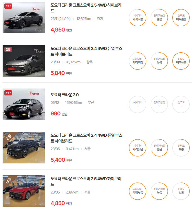 토요타 크라운 크로스오버 하이브리드 중고차 가격