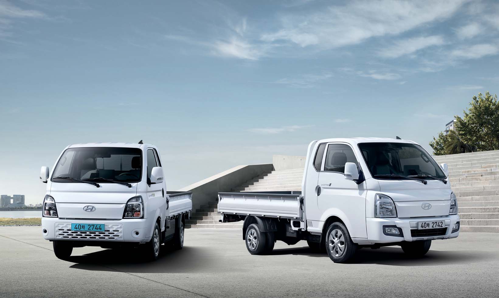 현대 포터2 일렉트릭의 외관은 효율적인 공기역학을 고려한 디자인으로, 도시형 상용차의 세련된 이미지를 가지고 있습니다.