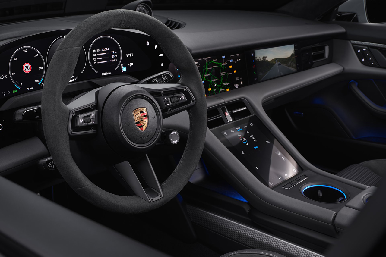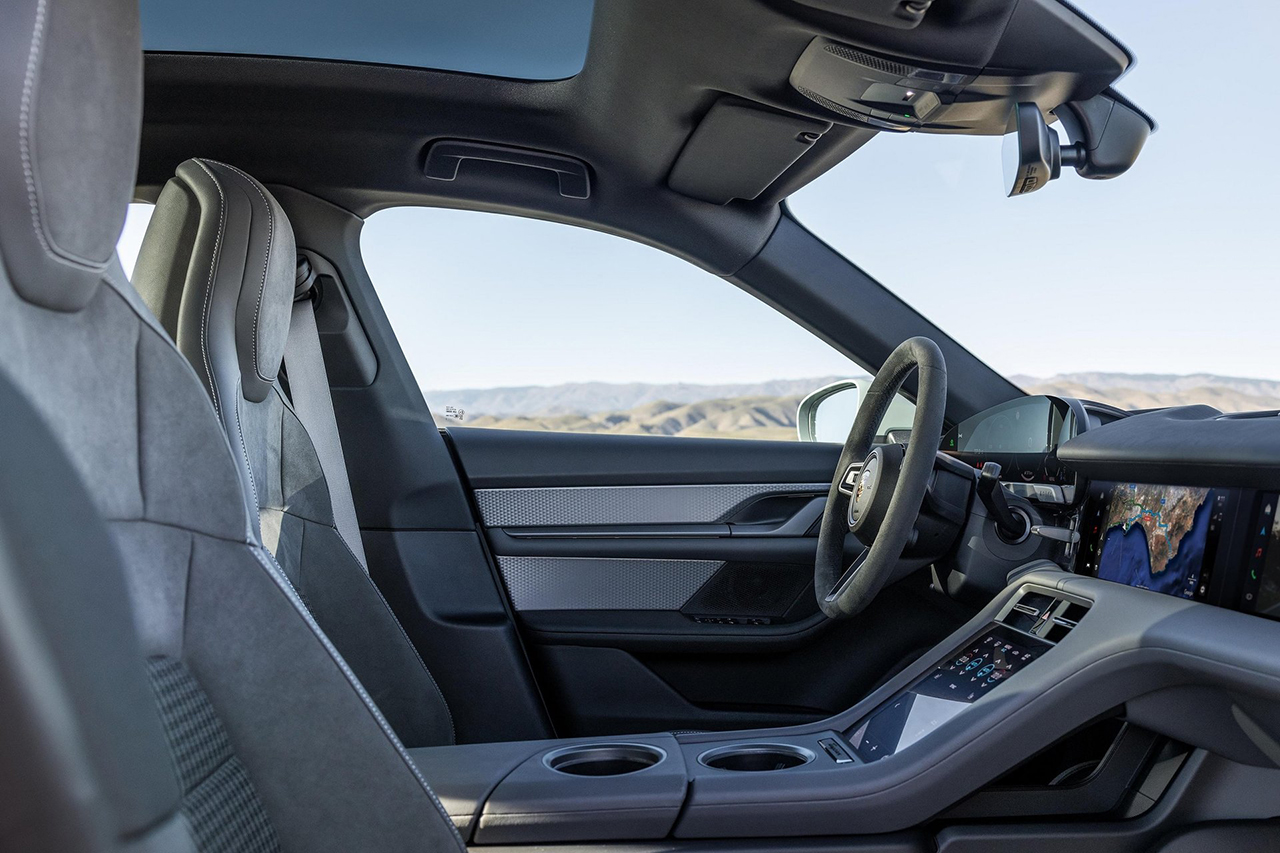 Taycan의 실내는 넓은 공간을 제공하며, 전자식 시트 조절 기능 등 다양한 편의 장비가 구비되어 있어 운전의 즐거움을 더합니다. 무선 충전 패드 및 스마트폰 연결도 지원합니다.