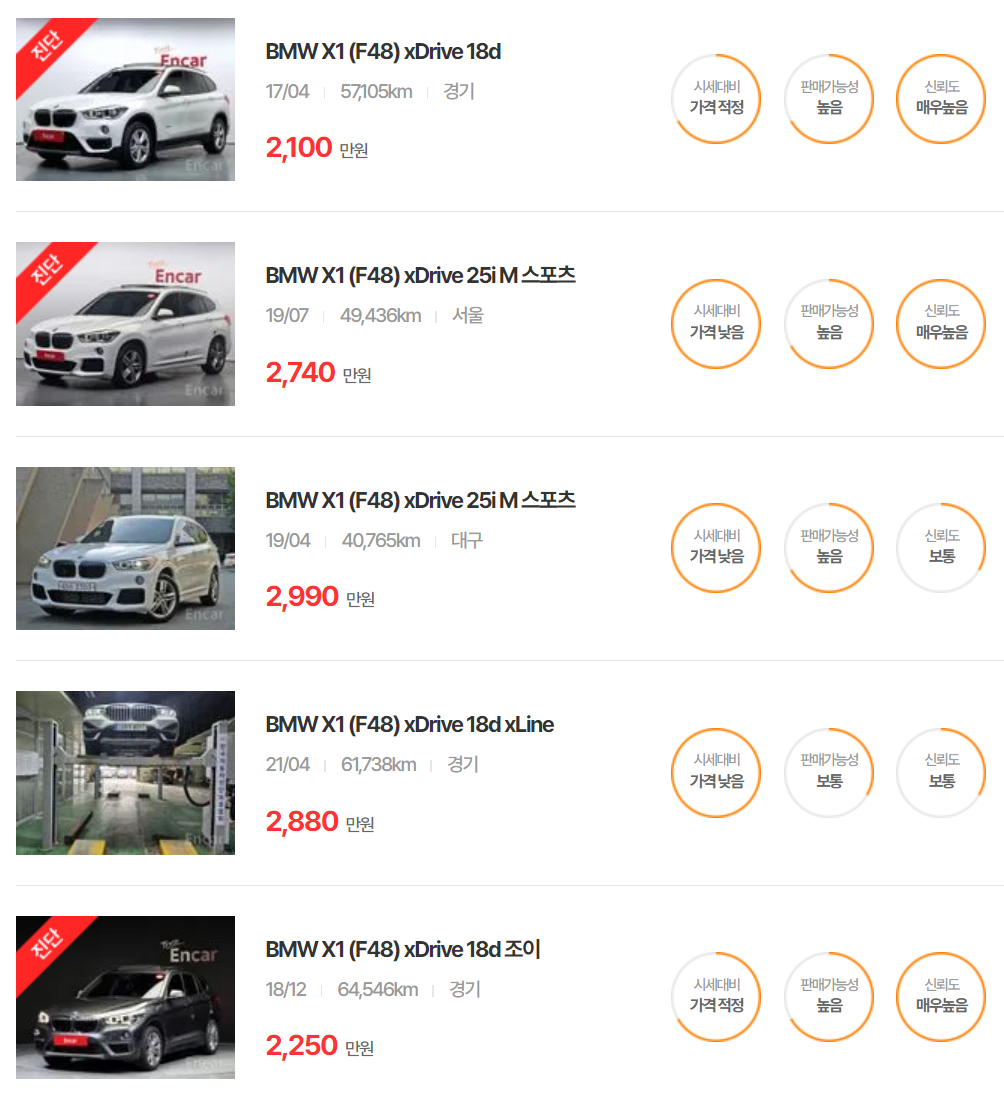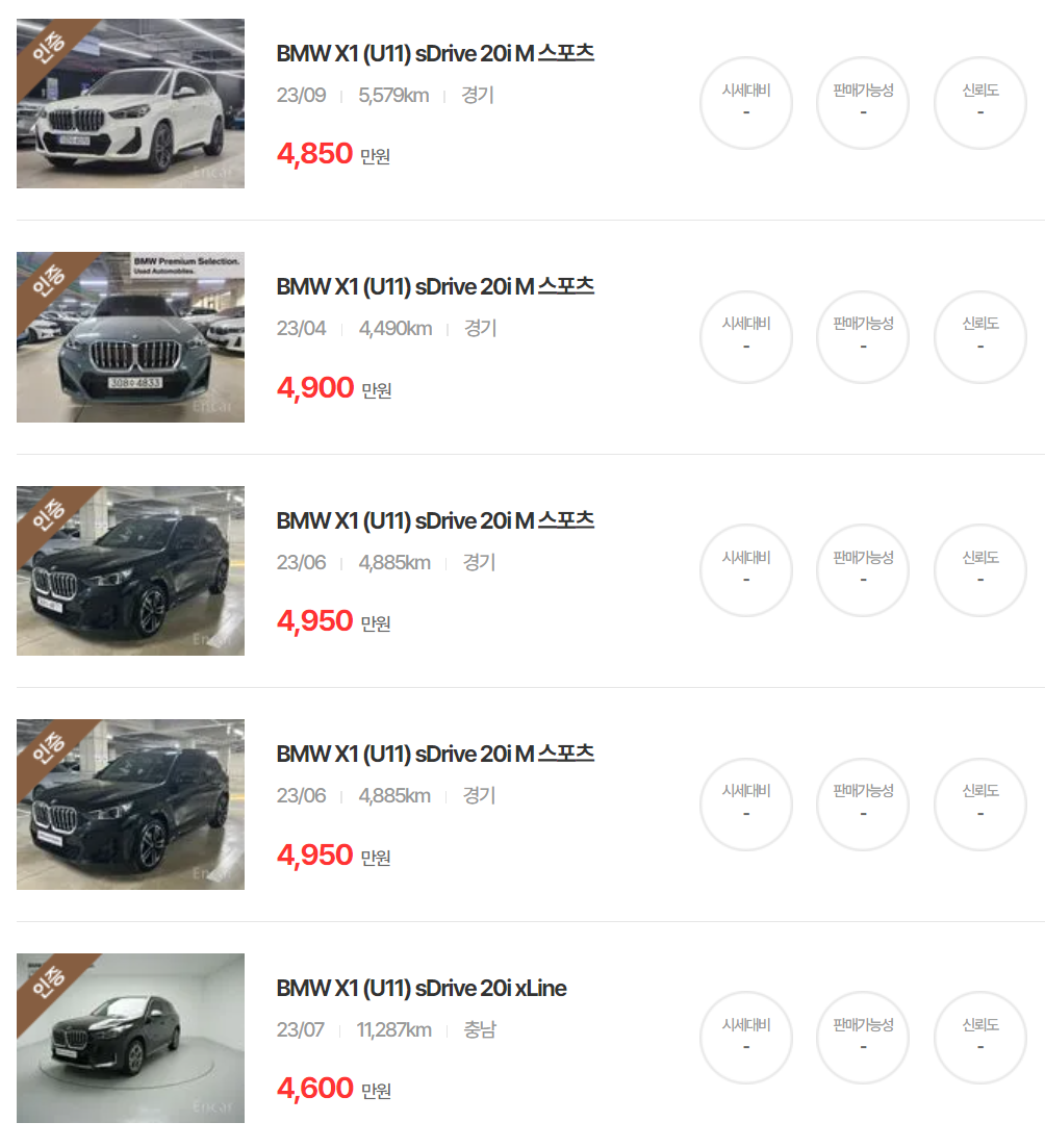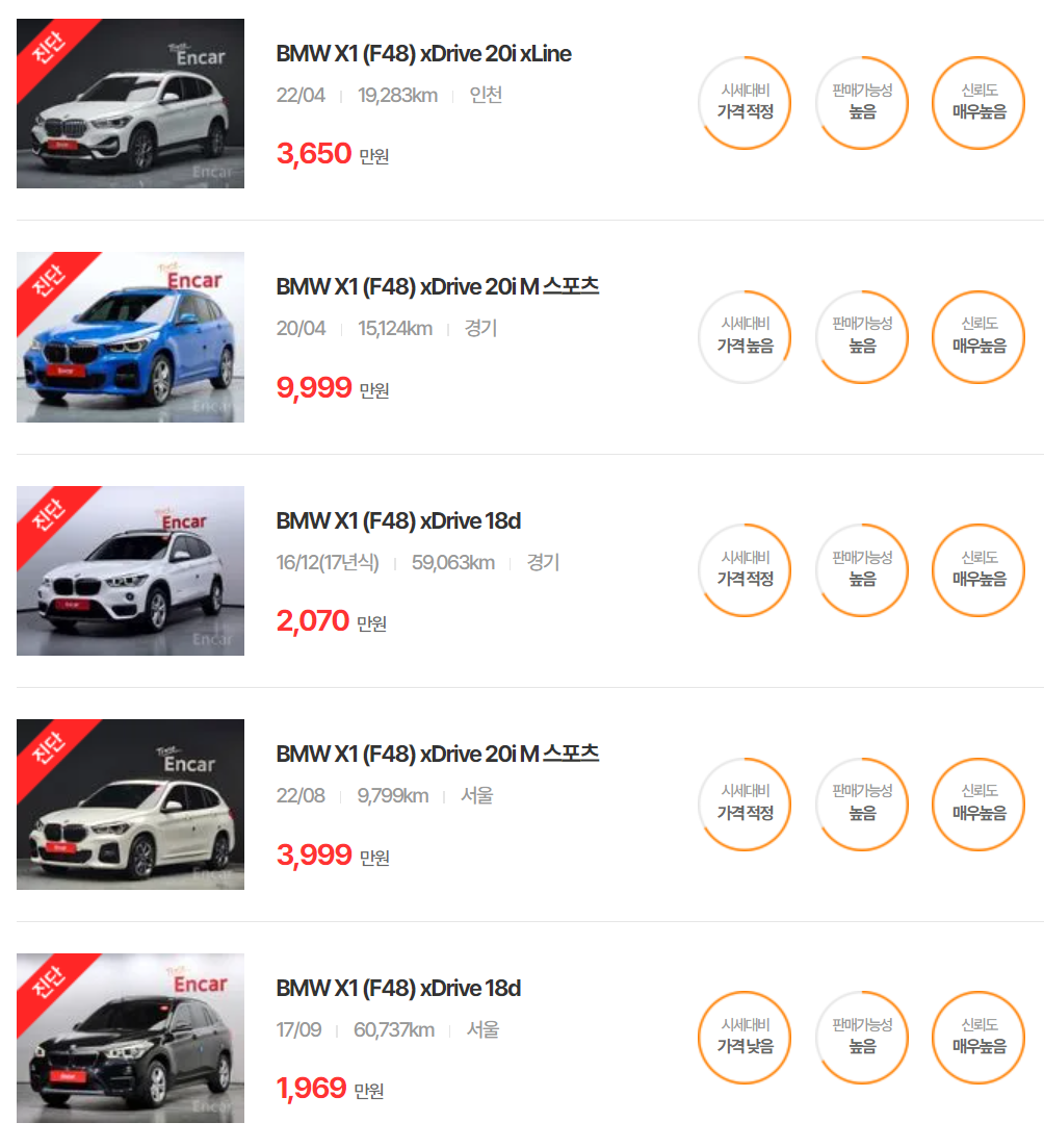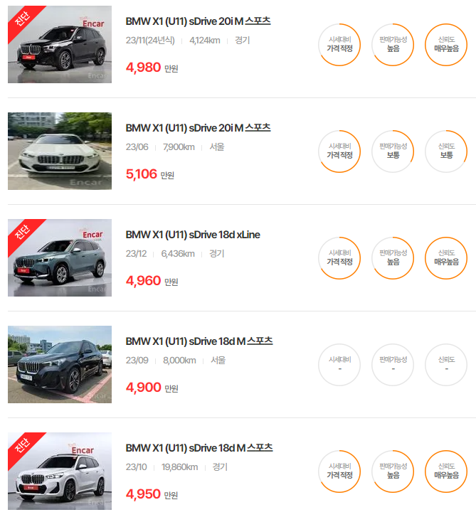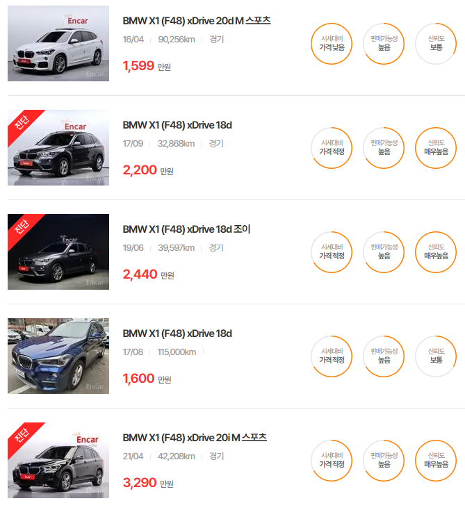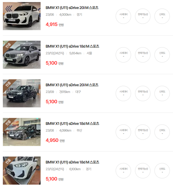 BMW X1은 다양한 연식과 옵션을 통해 각기 다른 매력을 발산하며, 최신 모델부터 경제적인 중고차까지 다양하게 선택할 수 있습니다. BMW X1, 중고차 가격, 연식별 시세, 차량 유지비에 대한 이 글이 중고차 구매를 고려 중인 구매자에게 유용한 정보가 되었기를 바랍니다. 실제 매물의 시세를 확인하려면 거래 플랫폼 비교가 중요합니다.