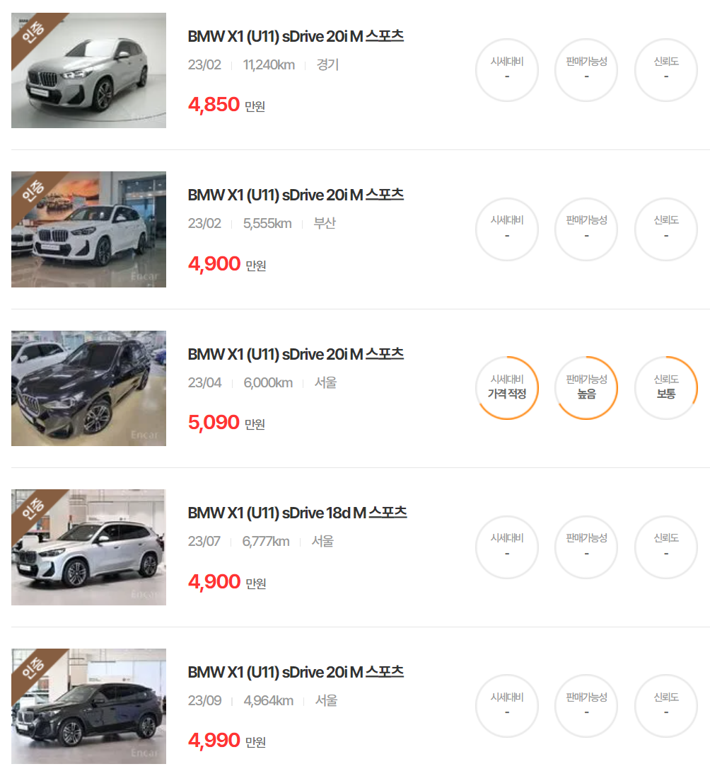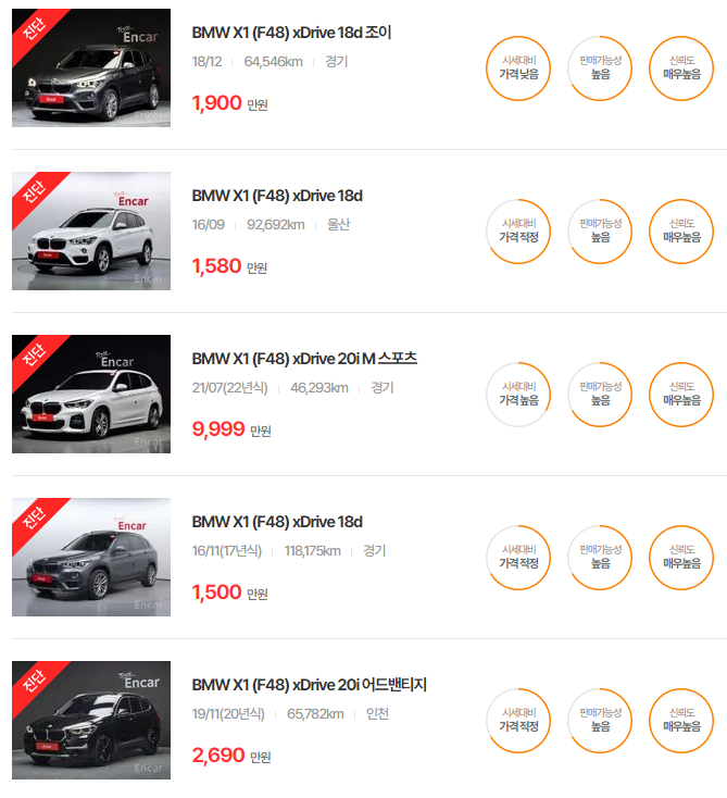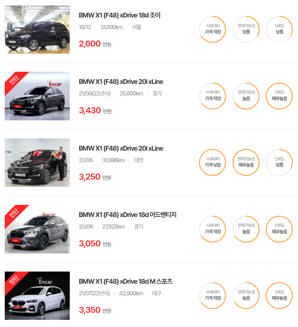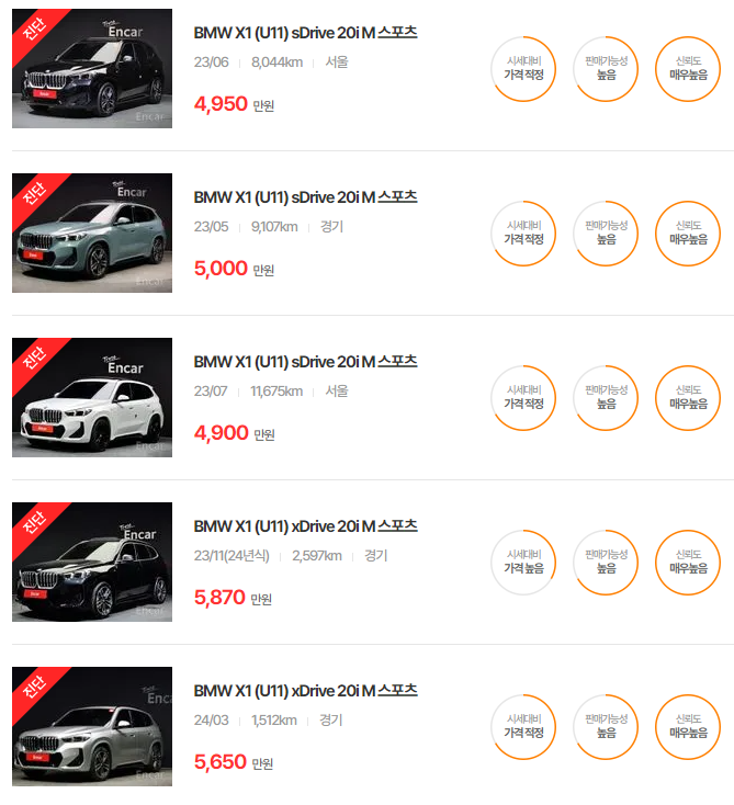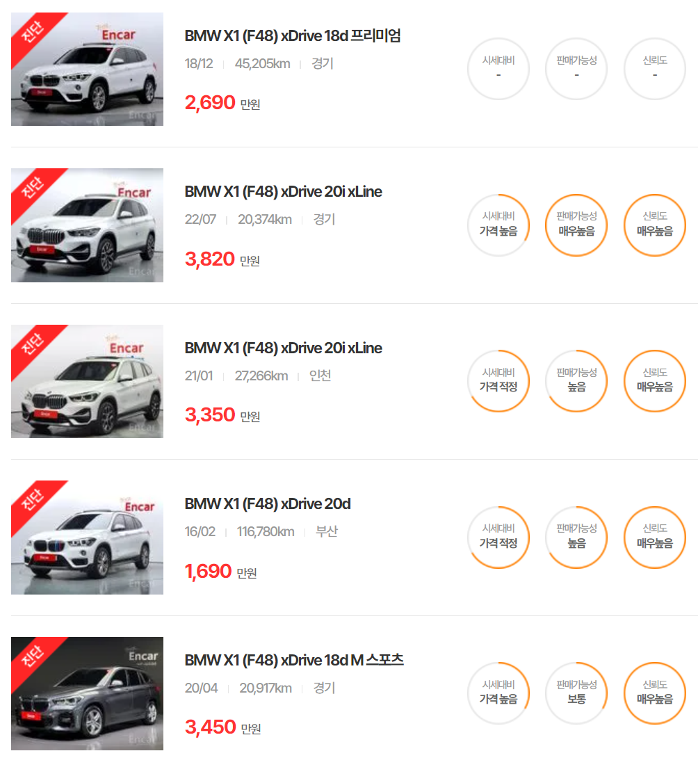 BMW X1은 다양한 연식과 옵션을 통해 각기 다른 매력을 발산하며, 최신 모델부터 경제적인 중고차까지 다양하게 선택할 수 있습니다. BMW X1, 중고차 가격, 연식별 시세, 차량 유지비에 대한 이 글이 중고차 구매를 고려 중인 구매자에게 유용한 정보가 되었기를 바랍니다. 실제 매물의 시세를 확인하려면 거래 플랫폼 비교가 중요합니다.