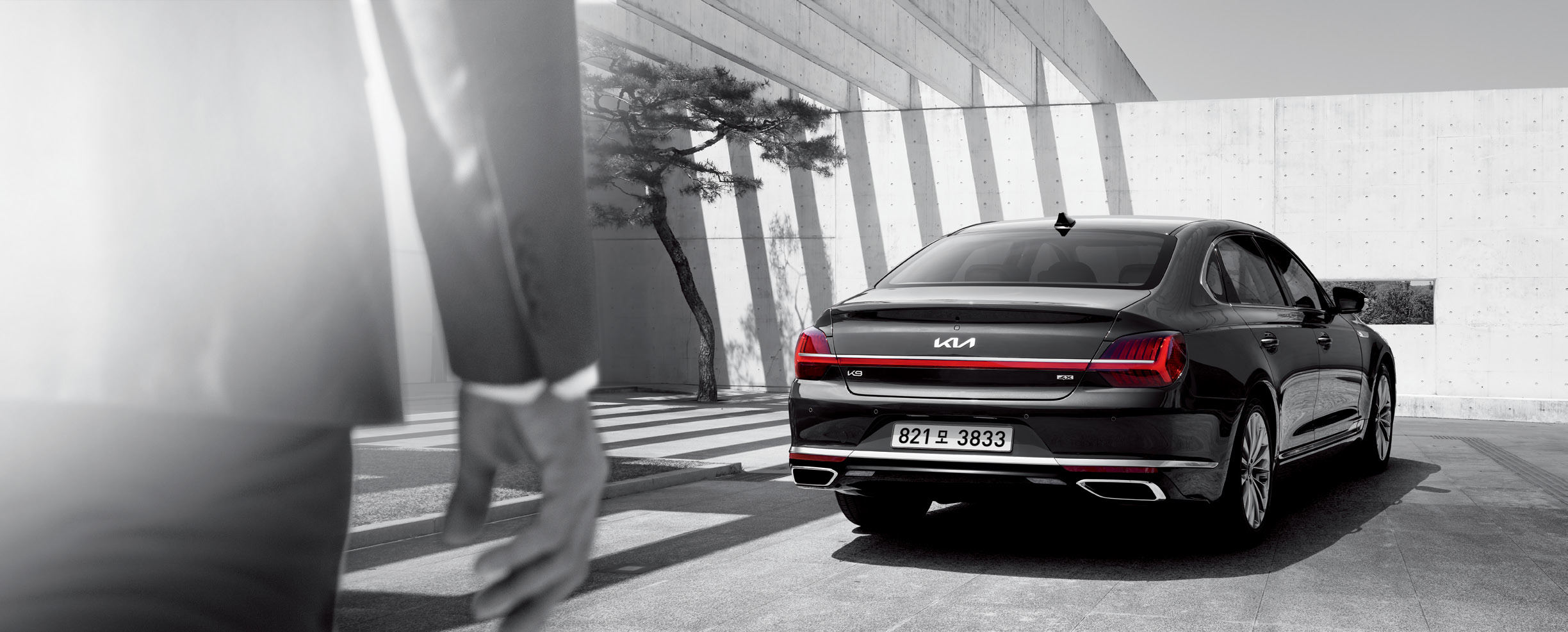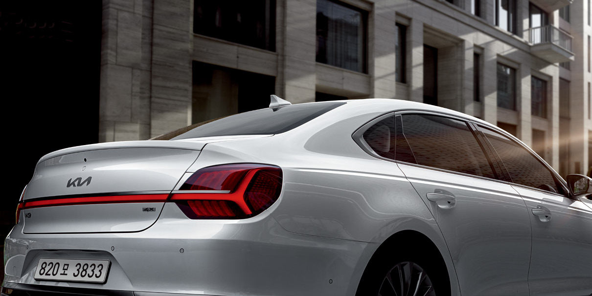 2025 K9은 높은 품격의 외관 디자인을 자랑하며, 후면 LED 라이트와 독특한 전면 그릴이 돋보입니다.